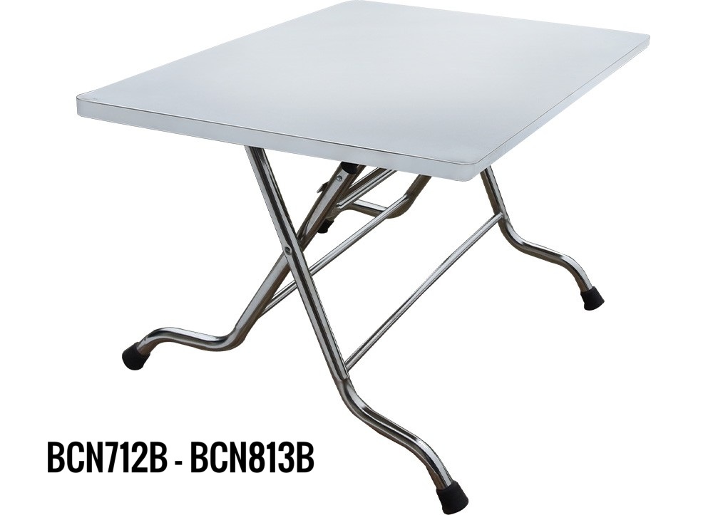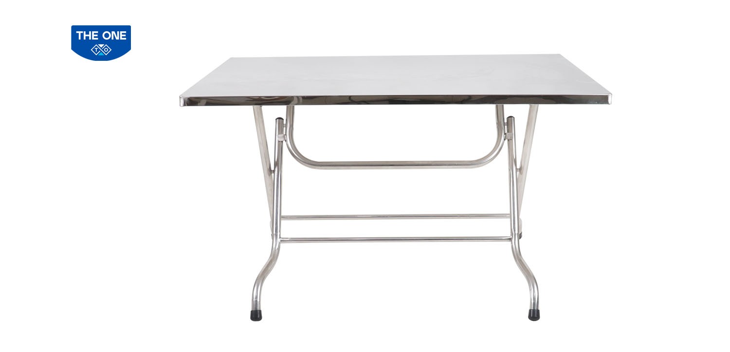 2. Bàn ăn chân gấp Inox toàn bộ, mặt bàn chữ nhật bo góc tròn. Xương mặt bàn sử dụng xương gấp, Ống chân bàn sử dụng Inox 32mm.