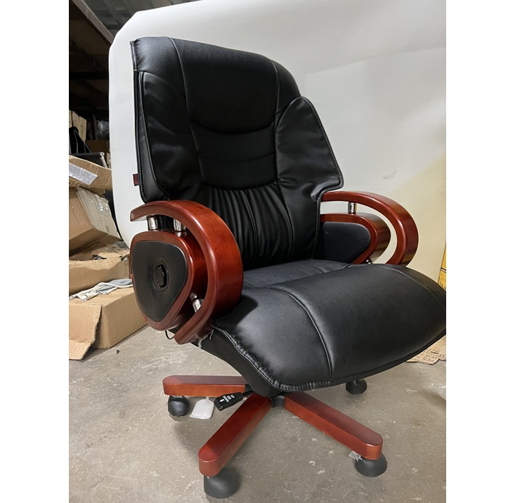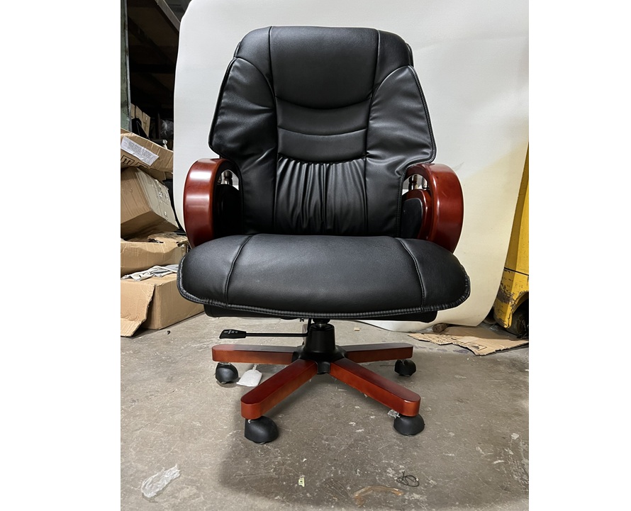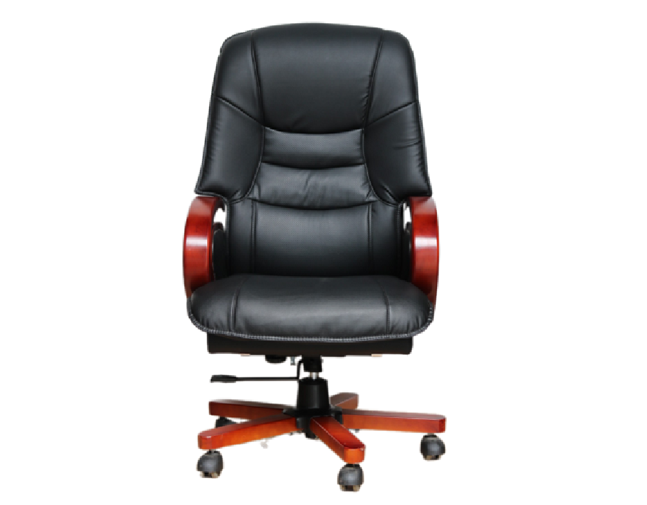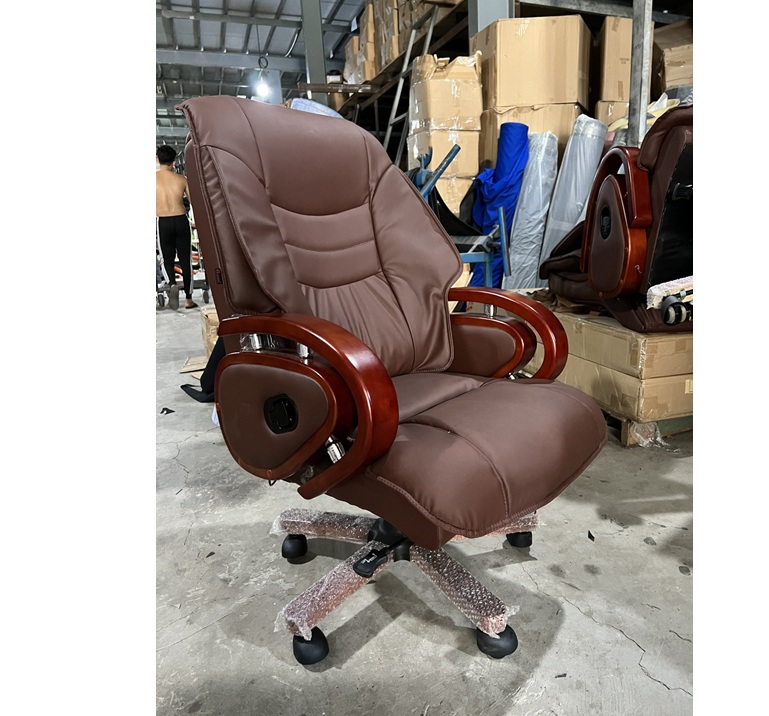 • Tay ghế gỗ uốn hai tầng, mặt tay ốp da, chân xoay ốp gỗ sơn PU có bánh xe lớn.