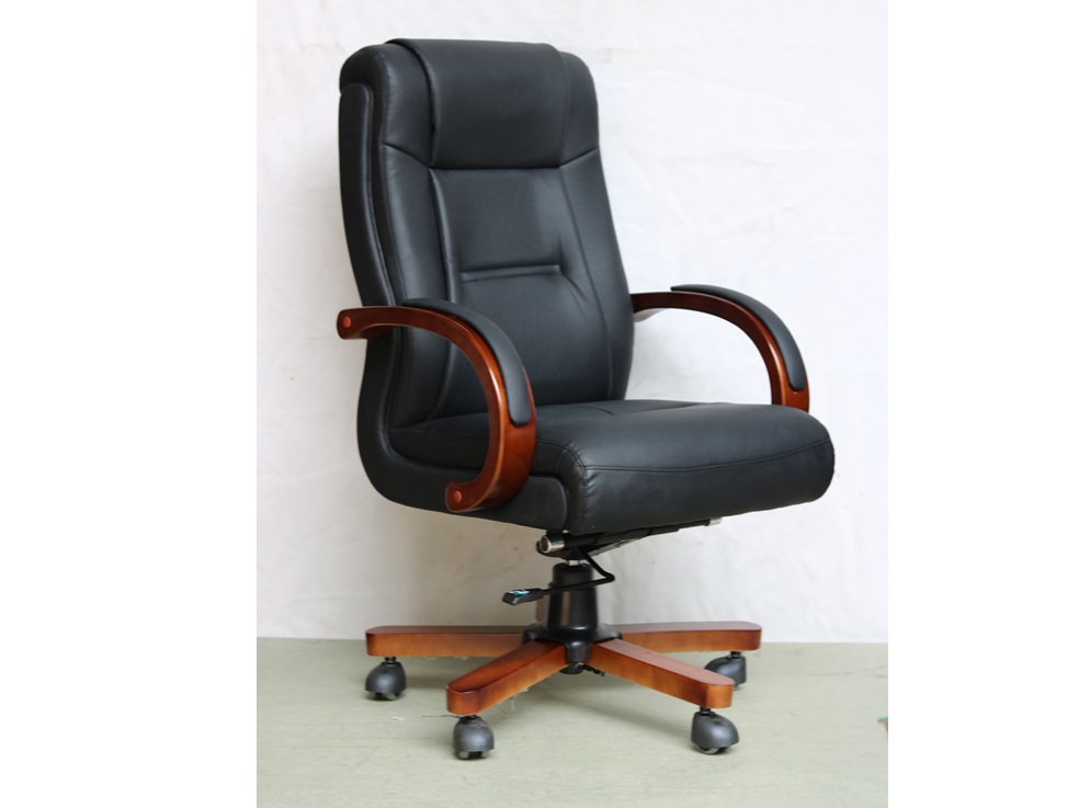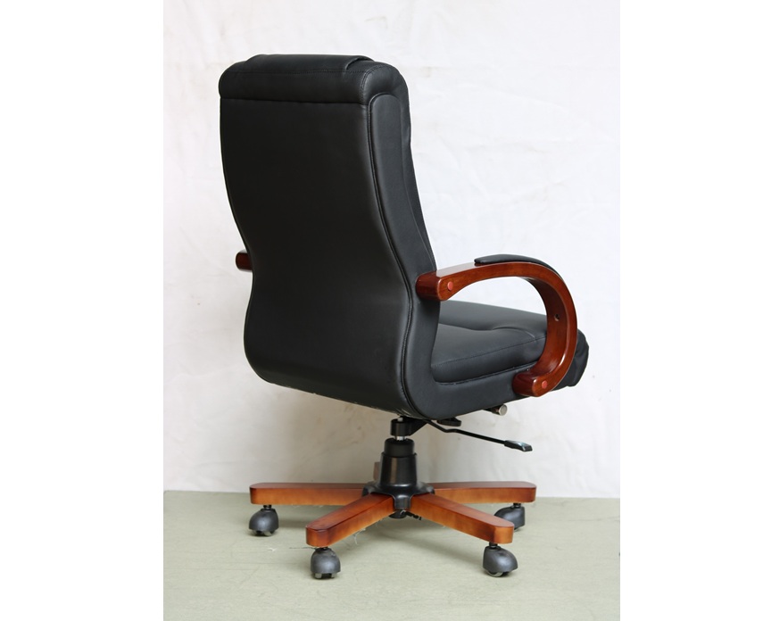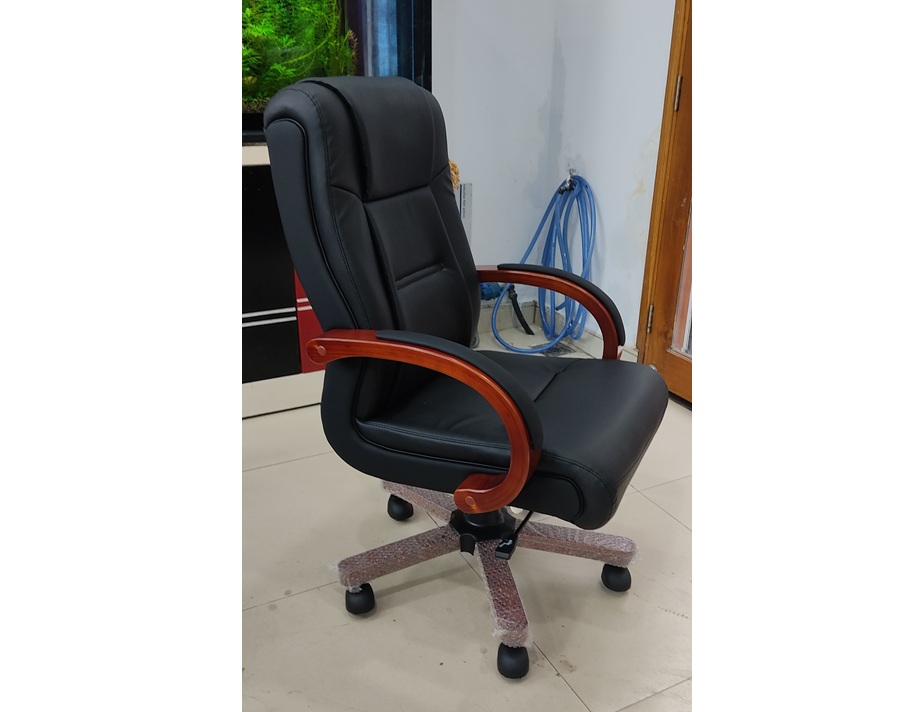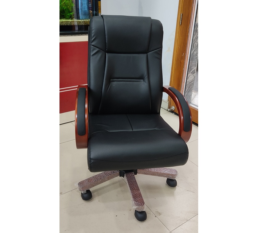 • Tay ghế gỗ có ốp da mặt tiếp xúc, chân xoay ốp gỗ sơn PU có bánh xe lớn.