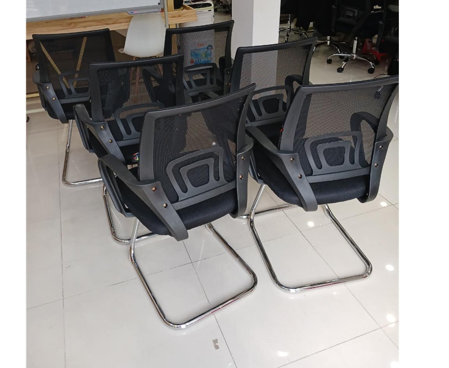 Ghế họp tựa lưới cỡ nhỏ, khung và tay ghế bằng nhựa.