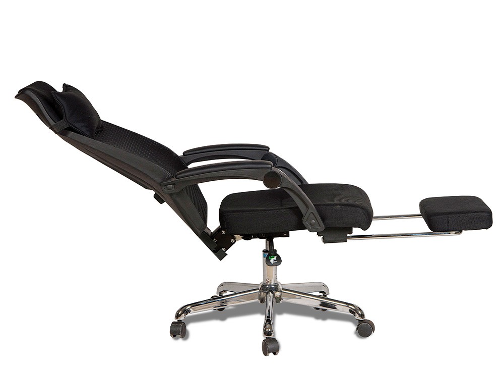 Ghế lưới cao cấp khung tựa nhựa bọc vải, kiểu dáng hiện đại. Ghế có thể ngả hãm nhiều góc độ, có cơ cấu để chân sử dụng thuận tiện khi ngả ra nằm. Chân thép mạ.